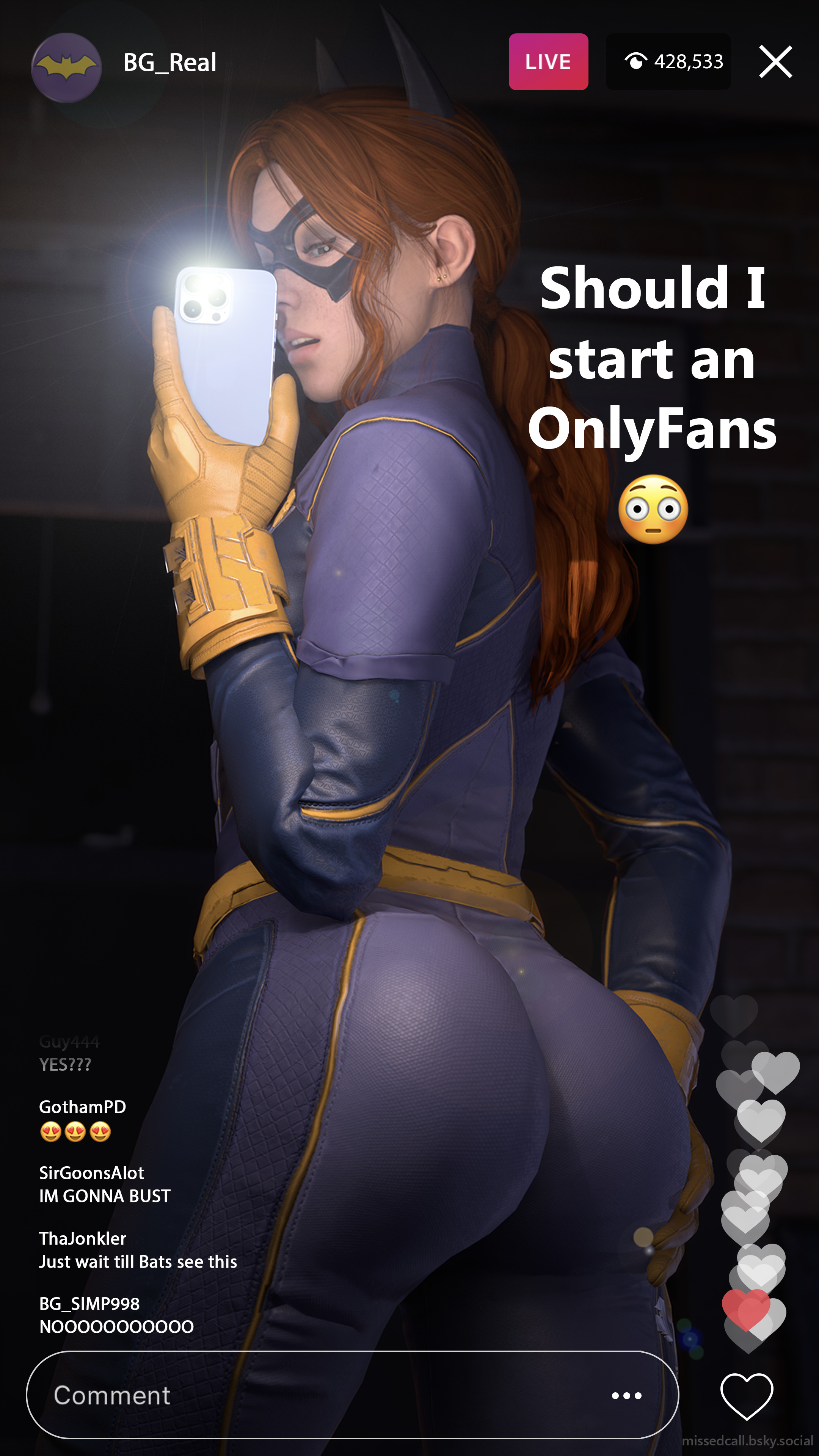 Batgirl has a question for her fans 🍑 Insta Live: